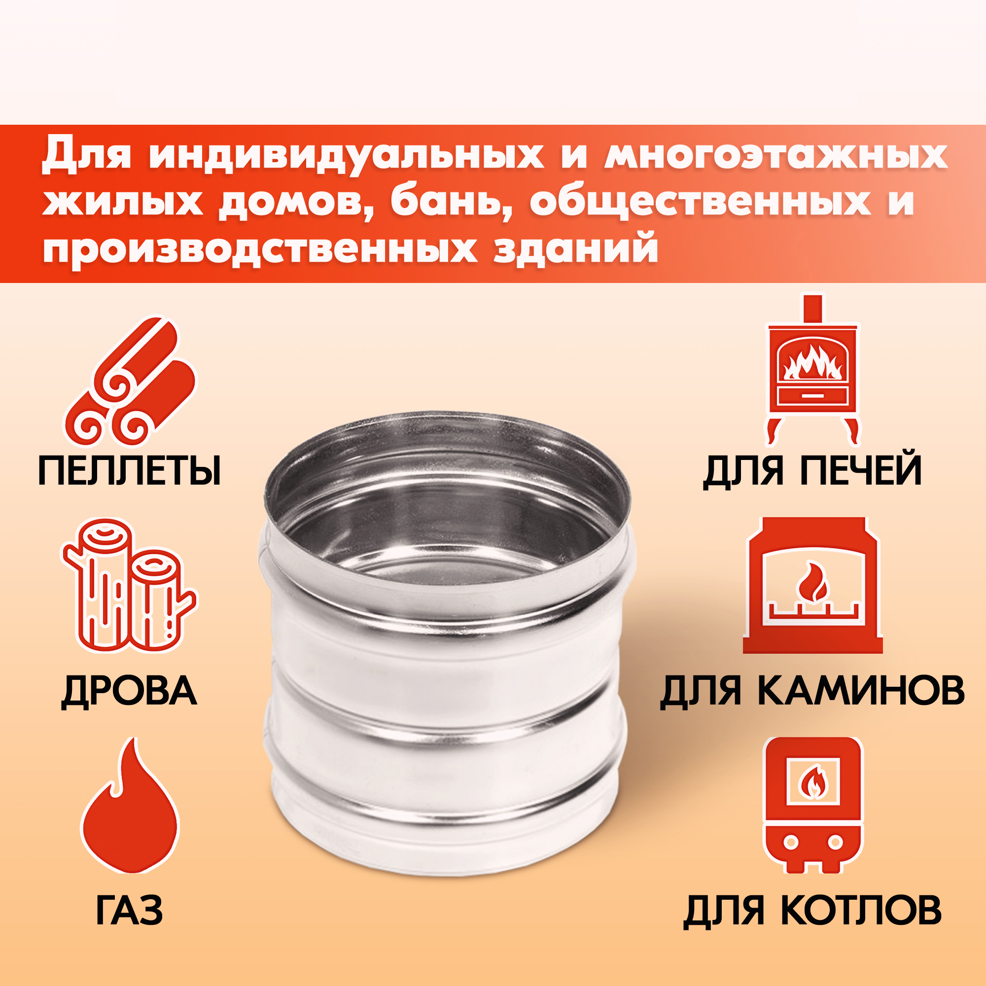 Адаптер дымохода Моно М-М 430-0.8 D115, переходник для печной трубы, адаптер котла из нержавейки