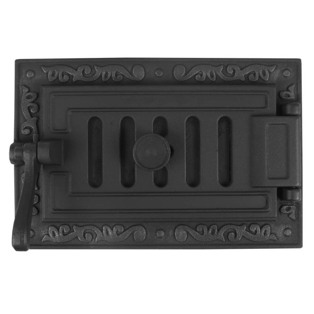 Крышка поддувальной дверки оснащена шибером, что позволяет регулировать процесс подачи воздуха более удобным и безопасным способом.