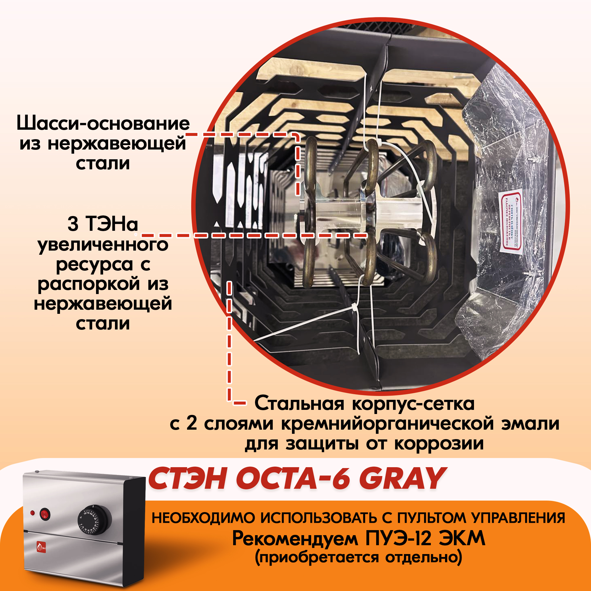 Электрическая каменка СТЭН ЭКМ 6 Octa gray в Пензе | Доставка по России