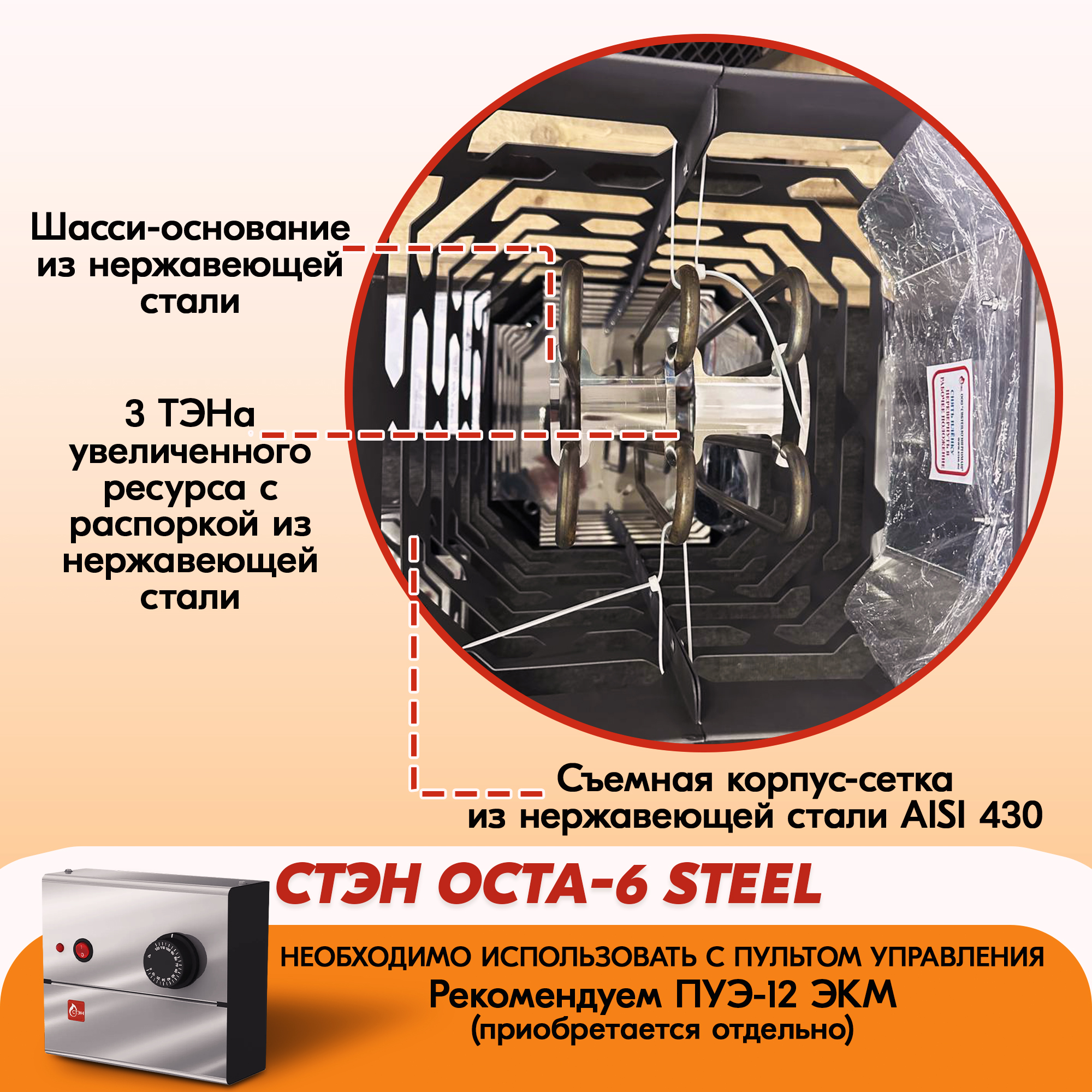 Электрическая каменка СТЭН ЭКМ 6 Octa steel в Пензе | Доставка по России