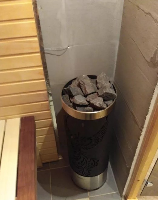 Цилиндрическая форма каменки позволяет экономить пространство. Для парильных малого и среднего размеров это крайне важно.