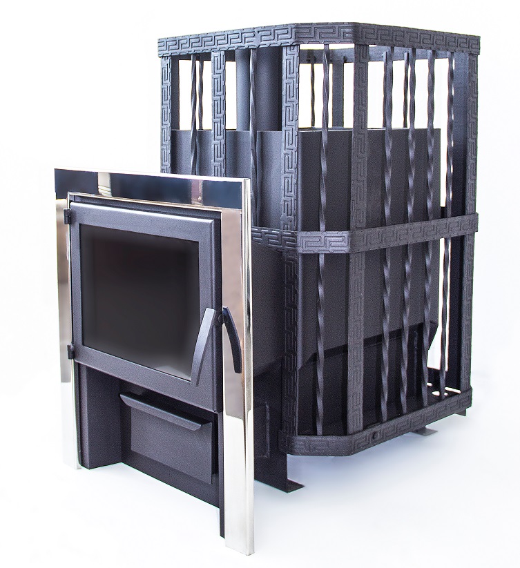 Большое количество качественно нагретых камней обеспечивает стабильную температуру в парильном помещении. Печь оснащена выносным топливным каналом, что позволяет ее топить из смежного помещения. Решетка из массивного чугуна дает  равномерное и мощное горение дров.
