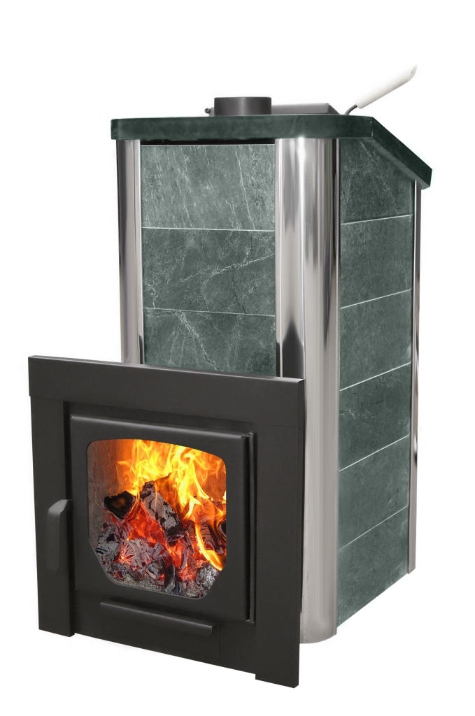 •    Закрытая каменка с наличием панорамного окна. Закрытость камянки позволяет нагреть камни до значительно больших температур, чем при открытом варианте.