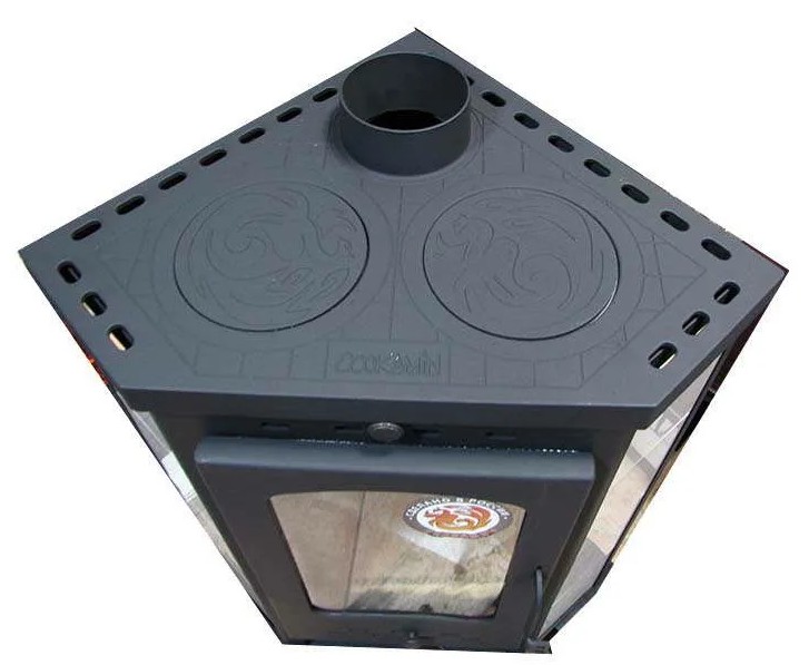 Печь-камин Экокамин Бавария угловая чугун с плитой