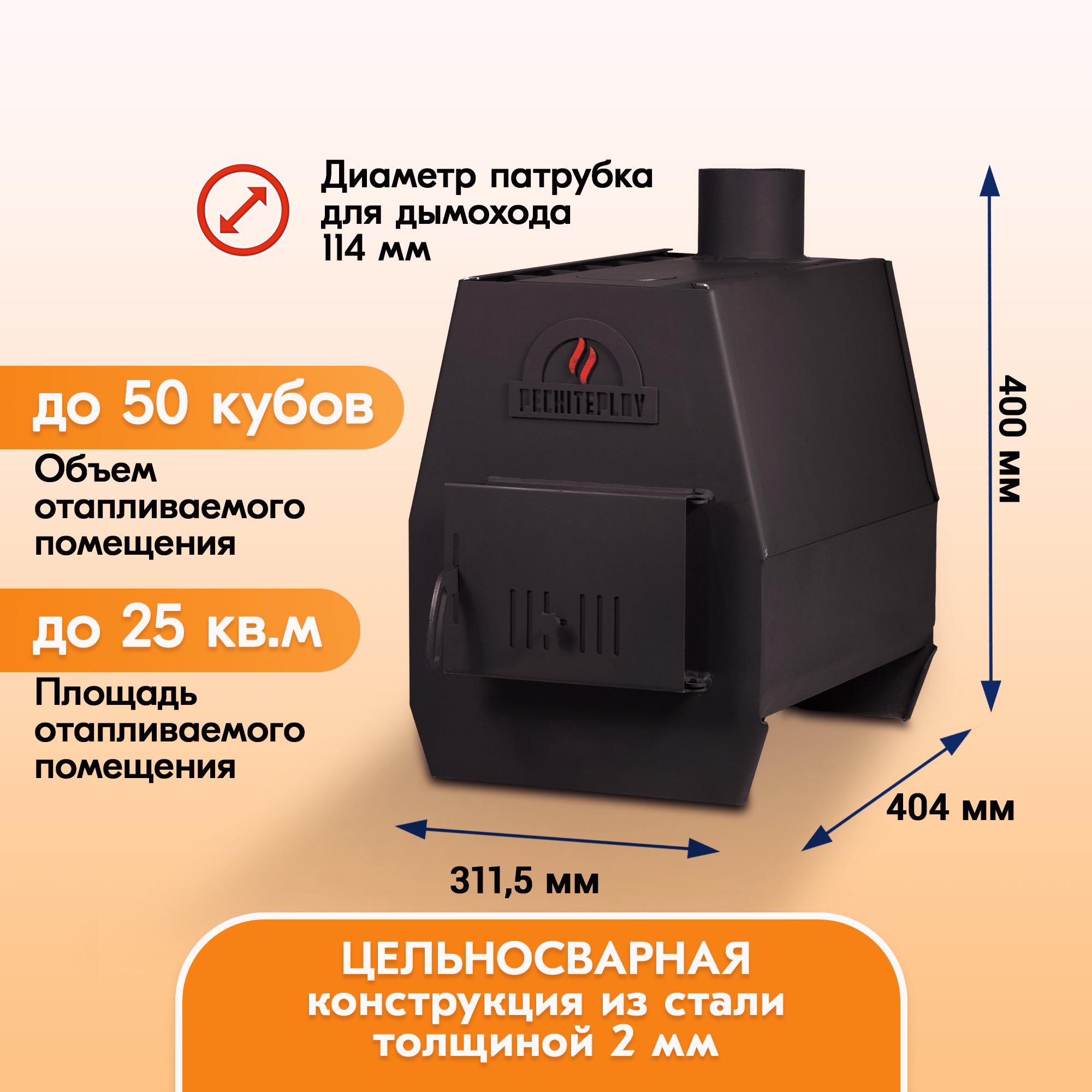 Компактная и экономичная печь PECHITEPLOV на 50 или 80 кубов не намного дороже обычной печи буржуйки, но при этом на порядок лучше.