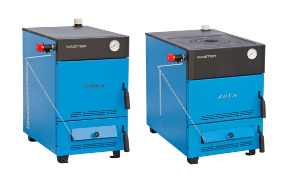 В качестве топлива могут быть использованы уголь и дрова. Сварной корпус изготовлен из высококачественной котельной стали. Центральное расположение камеры загрузки топлива. Удобная чистка теплообменника. Система канальной подачи вторичного воздуха. Высокая степень газоплотности. Большой объем камеры сгорания. Повышенная теплоотдача. Подвижная колосниковая решетка для удобства чистки. Возможность установки блок-ТЭНа мощностью от 3 до 9 кВт с пультом управления. Наличие термоманометра с удобочитаемой шкалой на фронтальной части котла. Высокое рабочее давление (подходит для эксплуатации закрытых систем отопления со стандартной группой безопасности на 3 атм.). Зольник располагается на водоохлаждаемой поверхности, что улучшает газоплотность и повышает кпд котла. Тягорегулятор устанавливается в качестве опции. Популярная отечественная торговая марка ZOTA выпустила в свет обновленную линейку современных котлов отопления – Master, которые отличаются высоким КПД, практичностью и долговечностью. Серия представлена пятью моделями, где все агрегаты оборудованы варочной панелью и съемной конфоркой, за исключением котла